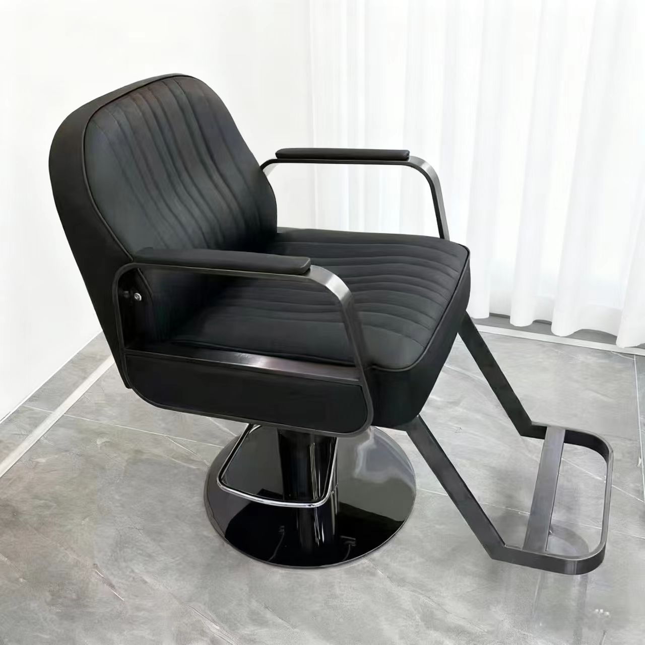 This seat cushion is thickened with a spring core that bounces right back instantly. The backrest’s super soft and comfy, designed with ergonomics in mind. The base is an enlarged black titanium plate—this is our factory’s best-selling Black Samurai barber chair! Buy your salon equipment straight from our source factory, and you’ll save a ton even on just one chair. We’re based in Bazhou, Hebei, and we’ve been in this business for 15 years. We have over 100 styles available, and every single style can be custom-made in any color you want. Free shipping to Southeast Asia (THA/MYS/VNM/IDN/PHL/SGP). If your shop is planning a renovation or is in the middle of it right now, hit us up as soon as you can!