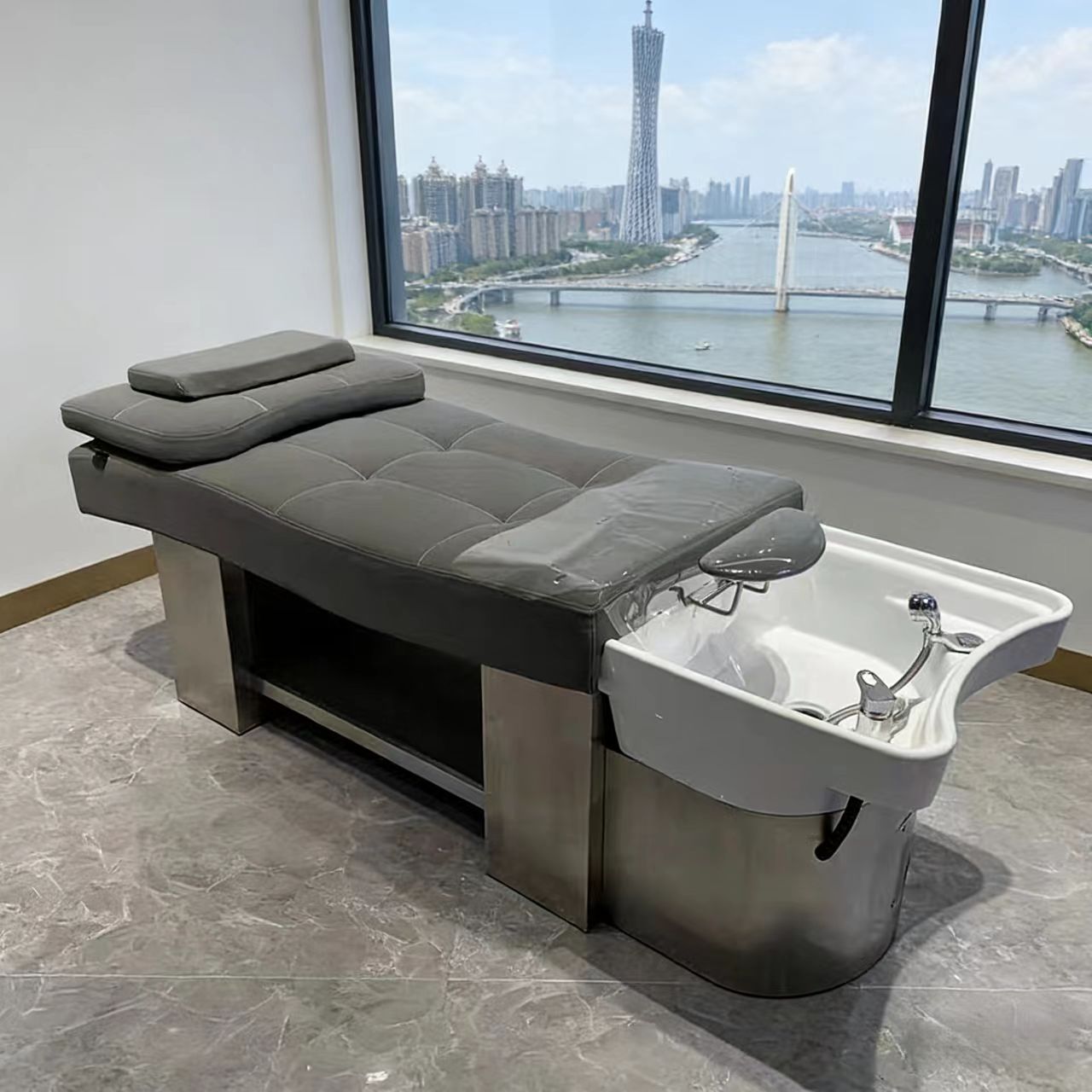 High-end Semi-reclining Shampoo Bed,Modern and Fashionable,PU Leather/Sponge/Stainless Steel/Ceramic,Guangdong,Hair Washing/Hair Care, etc.Footrest/Drainage Accessories