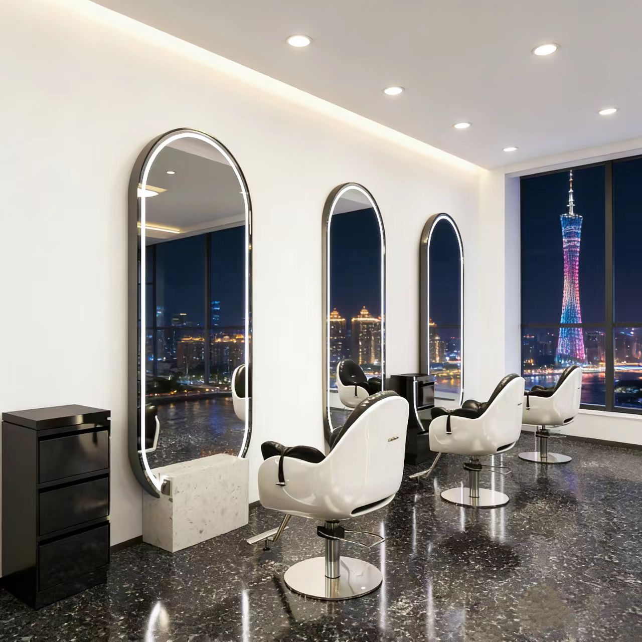 Stainless Steel Salon Mirror Station – Single/Double Sided with Marble Base, Customizable