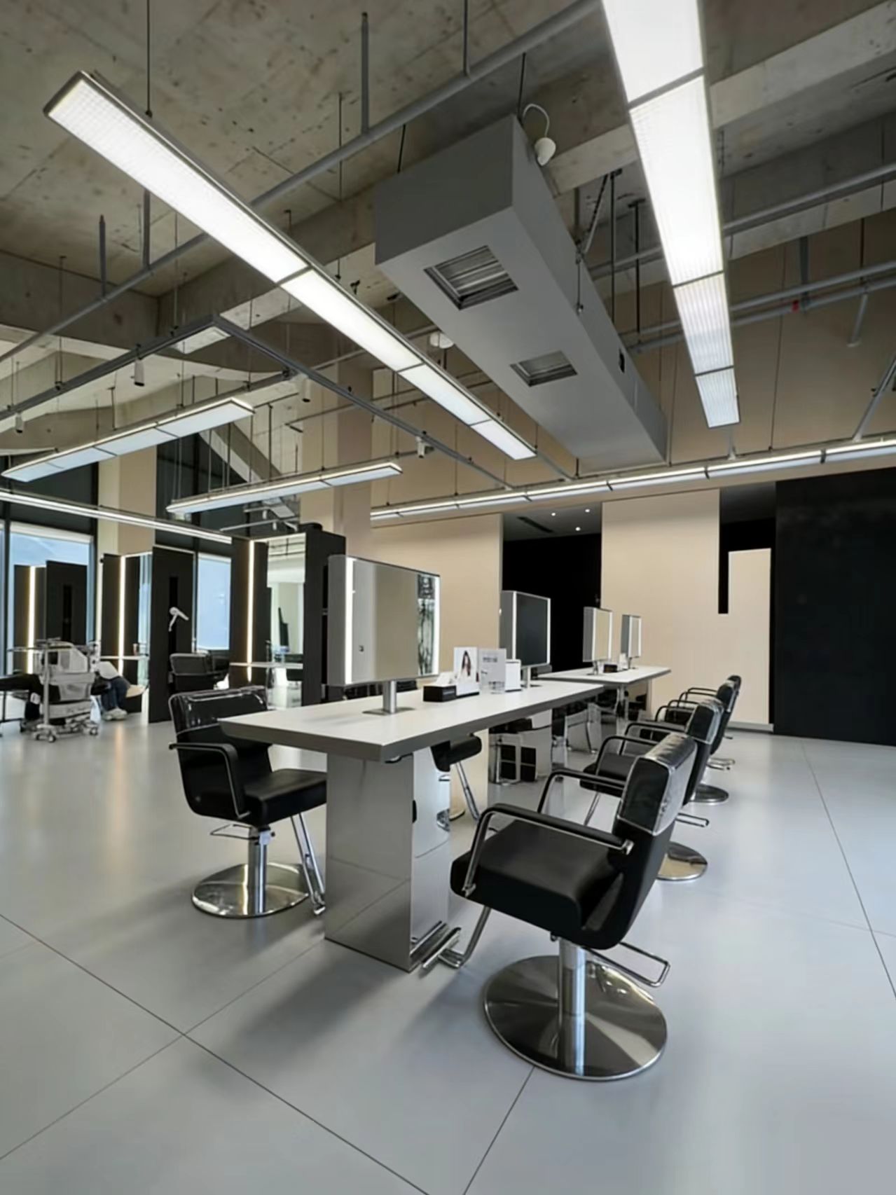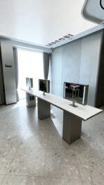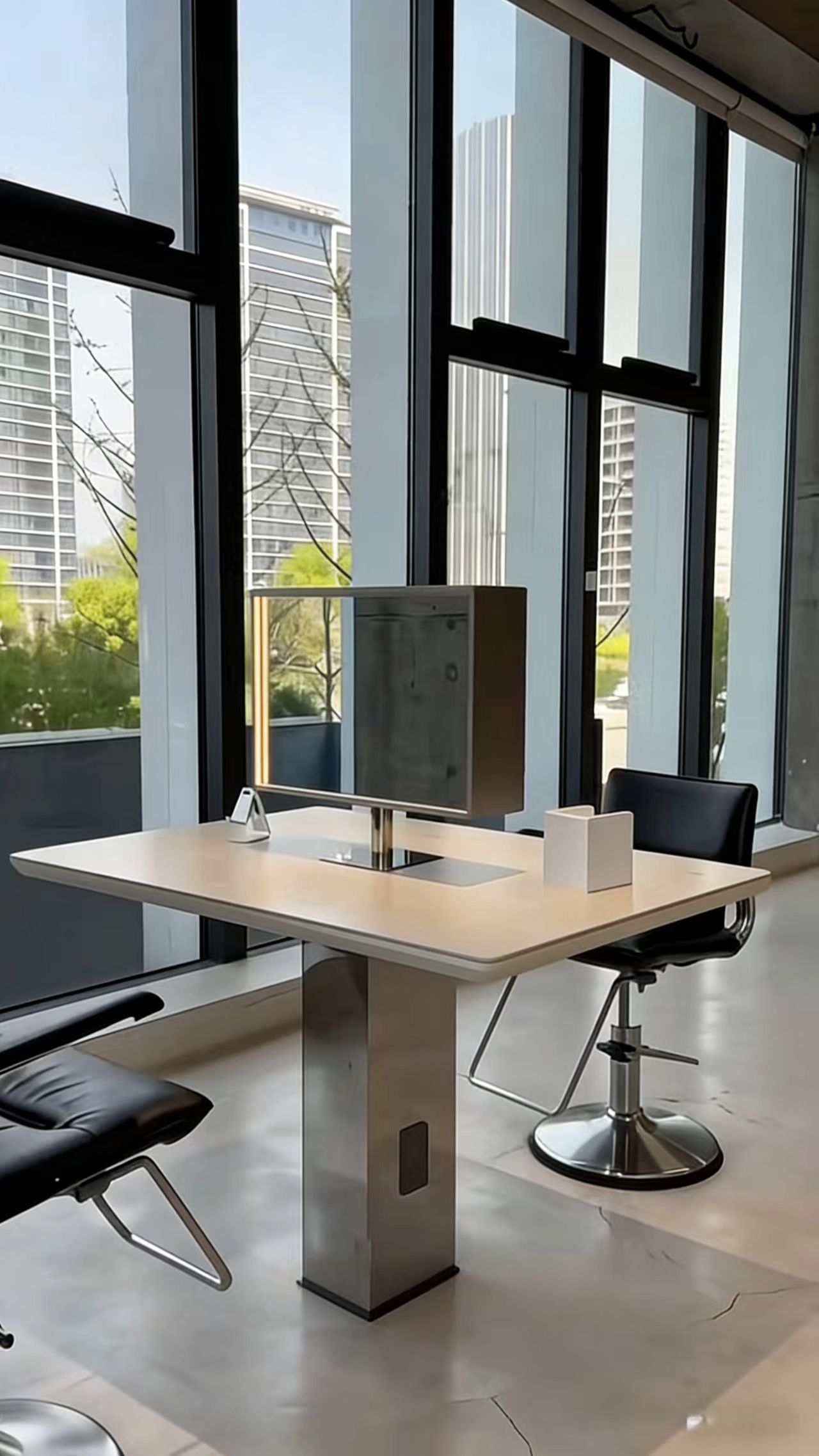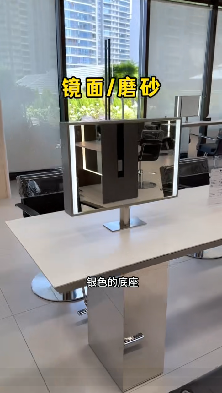 More and more salons love using this salon vanity mirror with built-in screen in their perm & color area. It features a sleek silver base and a marble countertop, creating a stunning visual effect. Beyond its great look, customers can also feel the exquisite details, premium texture and smooth touch in every use. The number of stations is fully customizable—single-sided, double-sided, 4-station, 8-station, all available. Most importantly, this compact and innovative vanity mirror can be ordered separately, without being bundled with the countertop. Combine it with the countertop, and it will instantly create a high-quality, eye-catching perm & color area for your salon. If you like it, save this post!