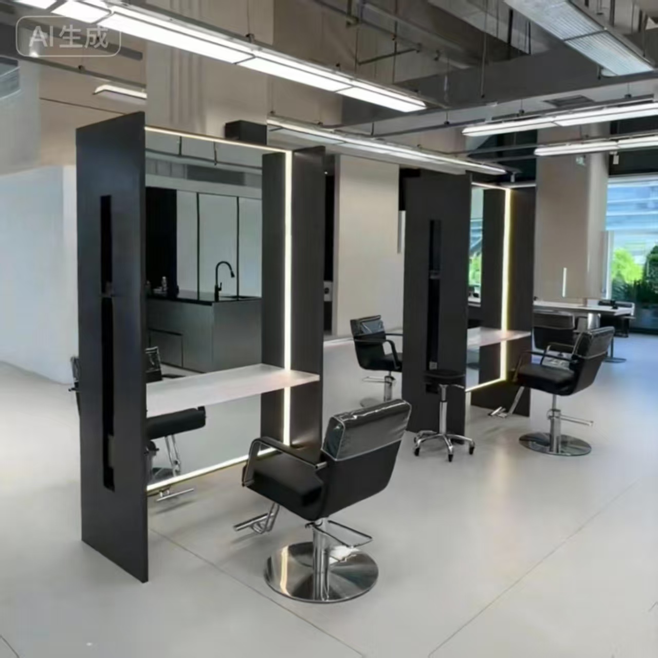 Do you think every hair salon can have a haircut area like this? It’s just that most don’t have such a large space. But fitting a double-sided mirror station like this in your salon is definitely more than manageable.
